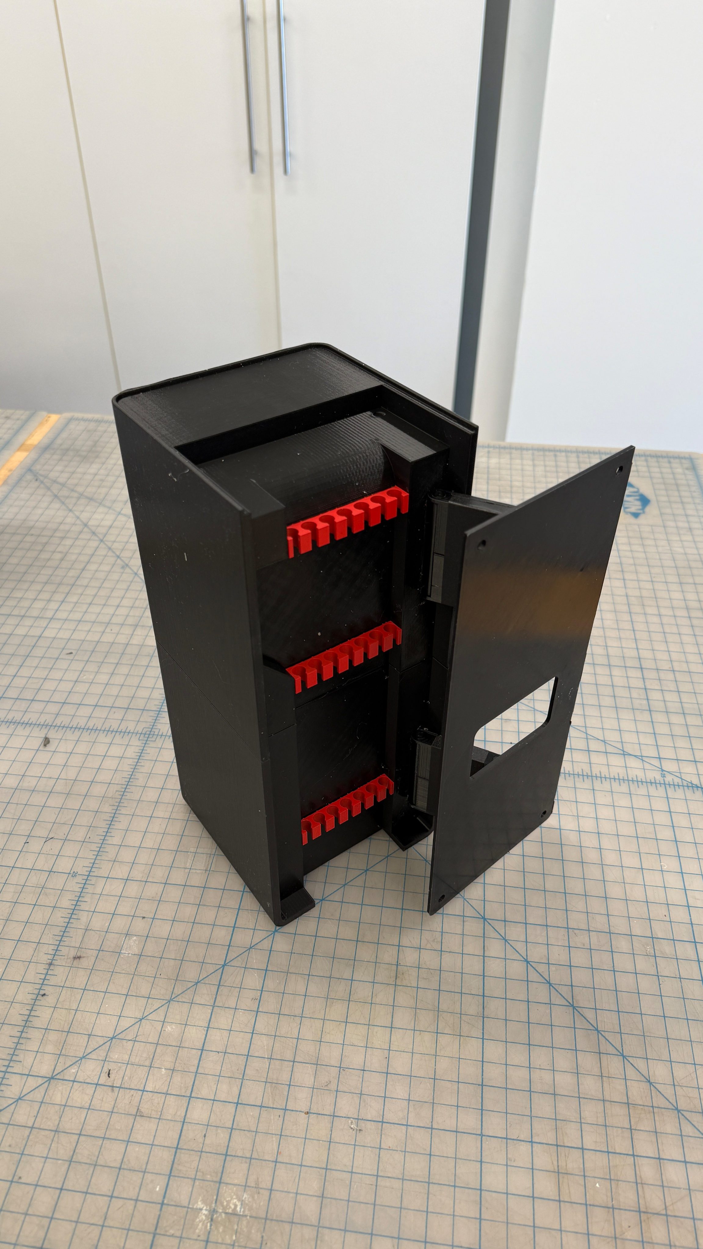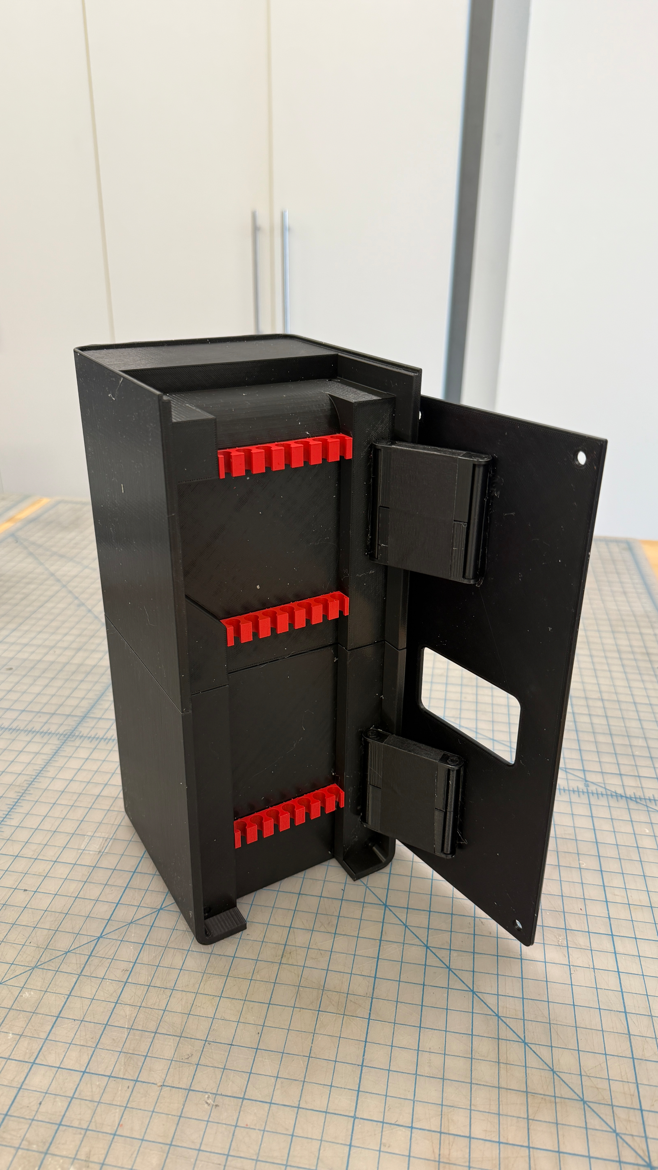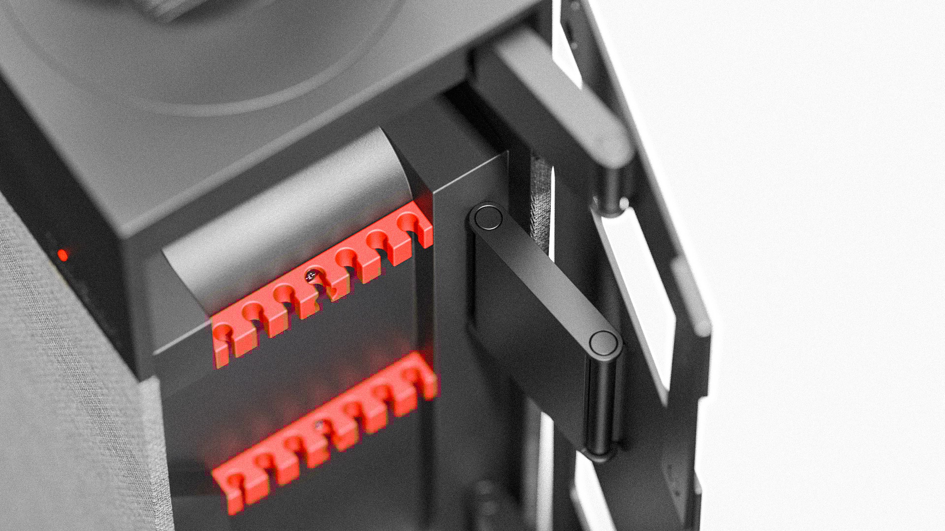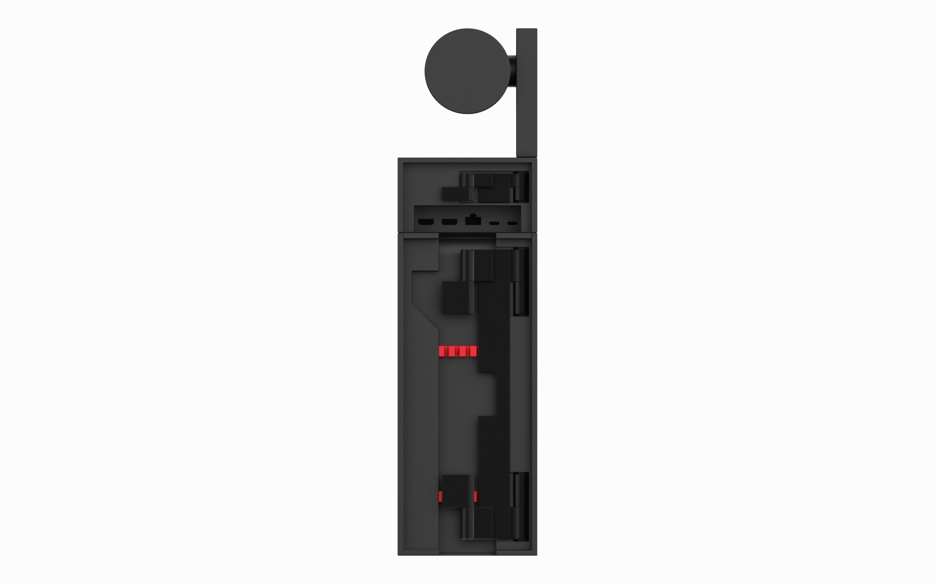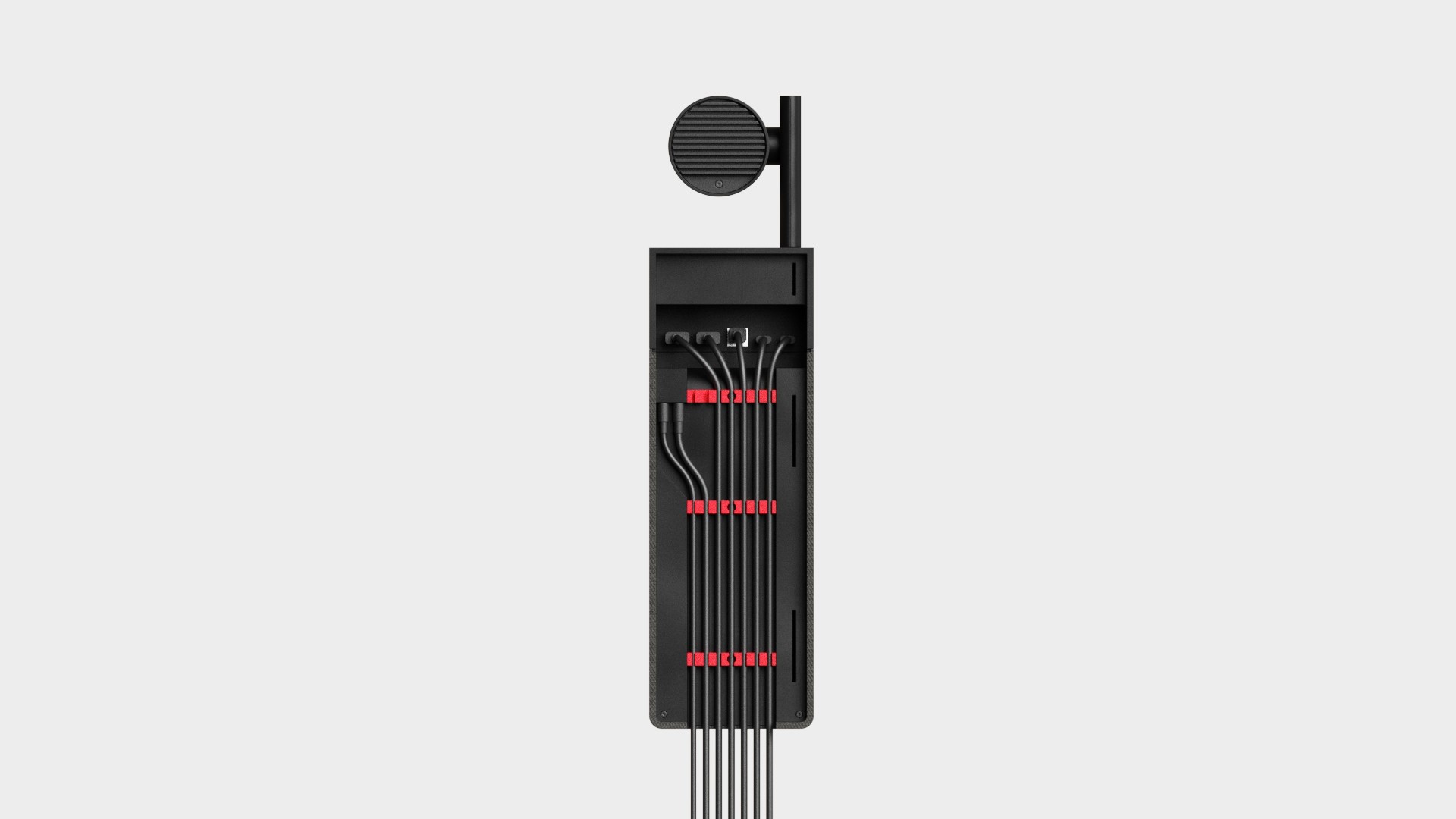 This structure, with its wide opening angle, makes cables easy to access and manage.